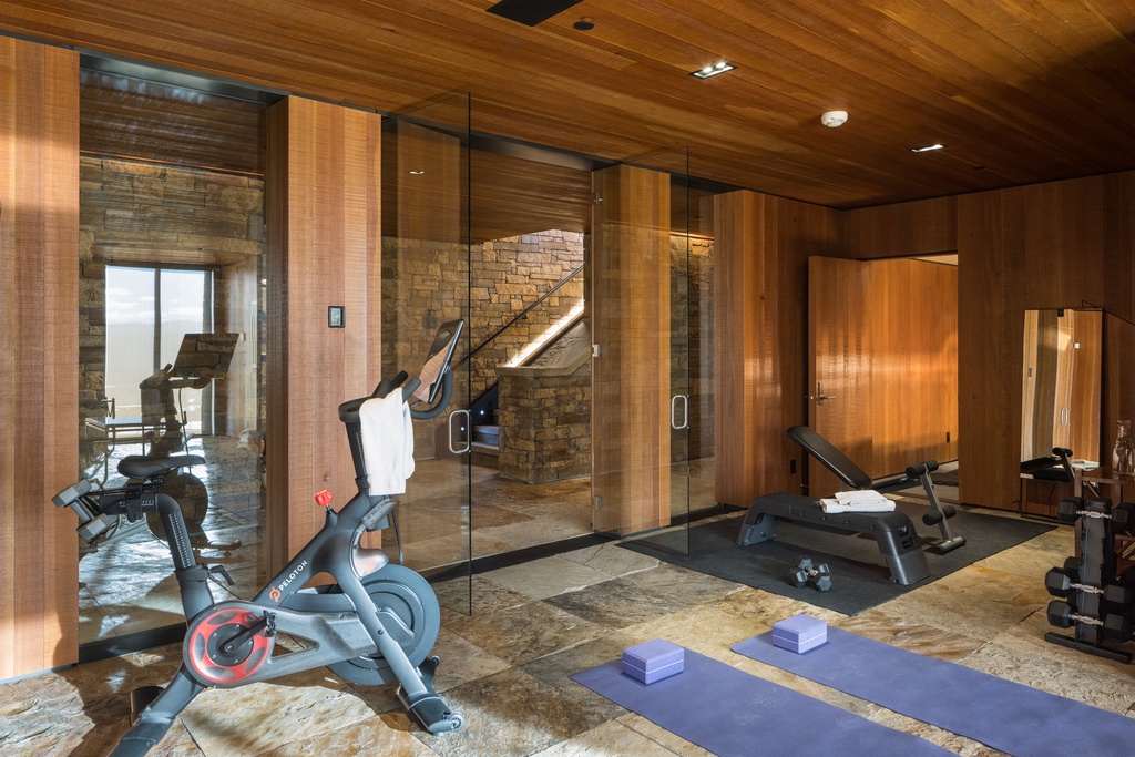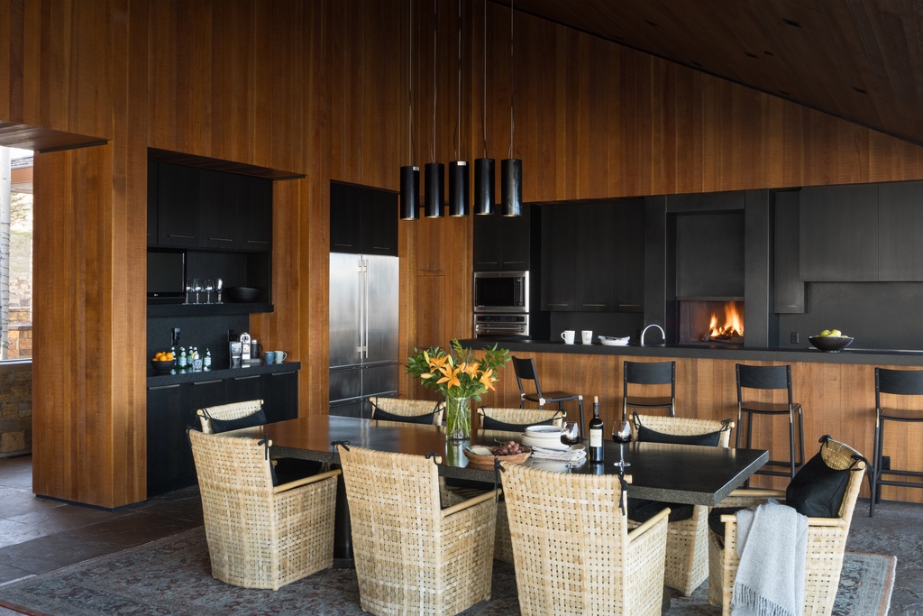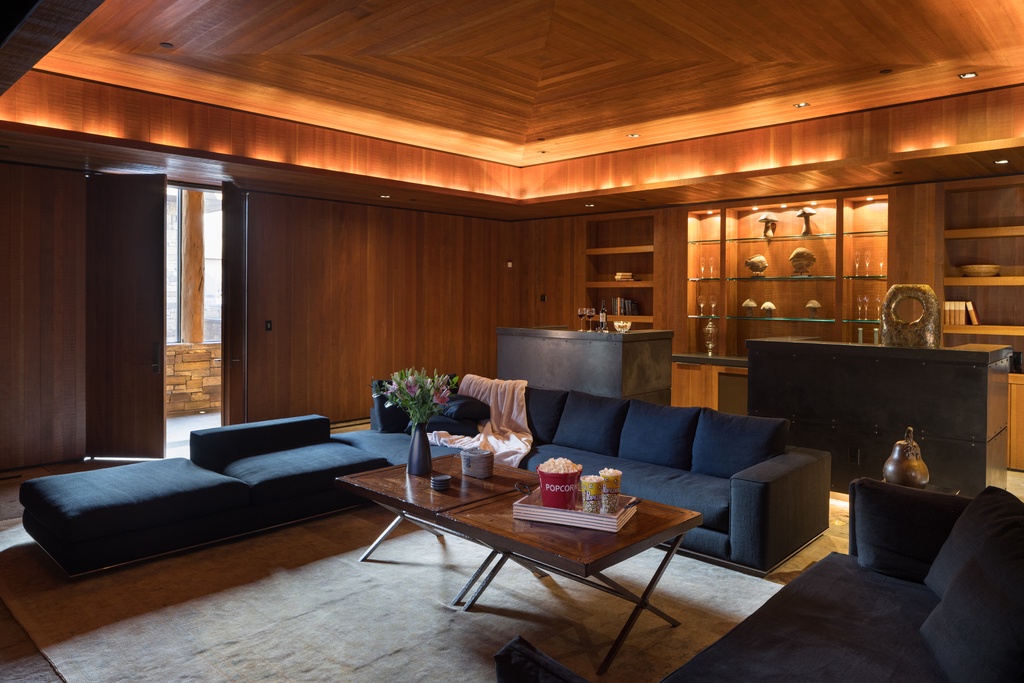 For your entertainment, the villa boasts a private cinema room where you can watch your favorite movies in comfort and style. After a day of adventure, unwind at the fully stocked bar with a cocktail in hand, as you watch the sunset paint the sky over the majestic Tetons. The villa also features multiple fireplaces, strategically placed to provide warmth and ambiance, creating cozy spots for relaxation.
