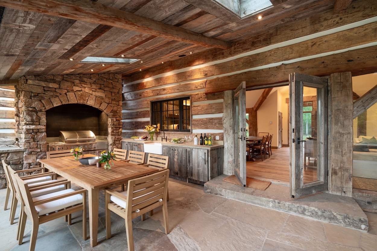 Step into a spacious living area perfect for relaxation and entertainment. The luxurious kitchen, highlighted by old barn wood cabinets, exudes a warm, rustic charm, and is paired with a large dining area ideal for family meals or gatherings. If you're entertaining, the open-plan kitchen and living room offer plenty of space, but the real showstopper is the outdoor covered area, designed for year-round enjoyment. Whether it's a summer barbecue or a cozy winter evening by the fire, this space makes it easy to savor the outdoors in any season.