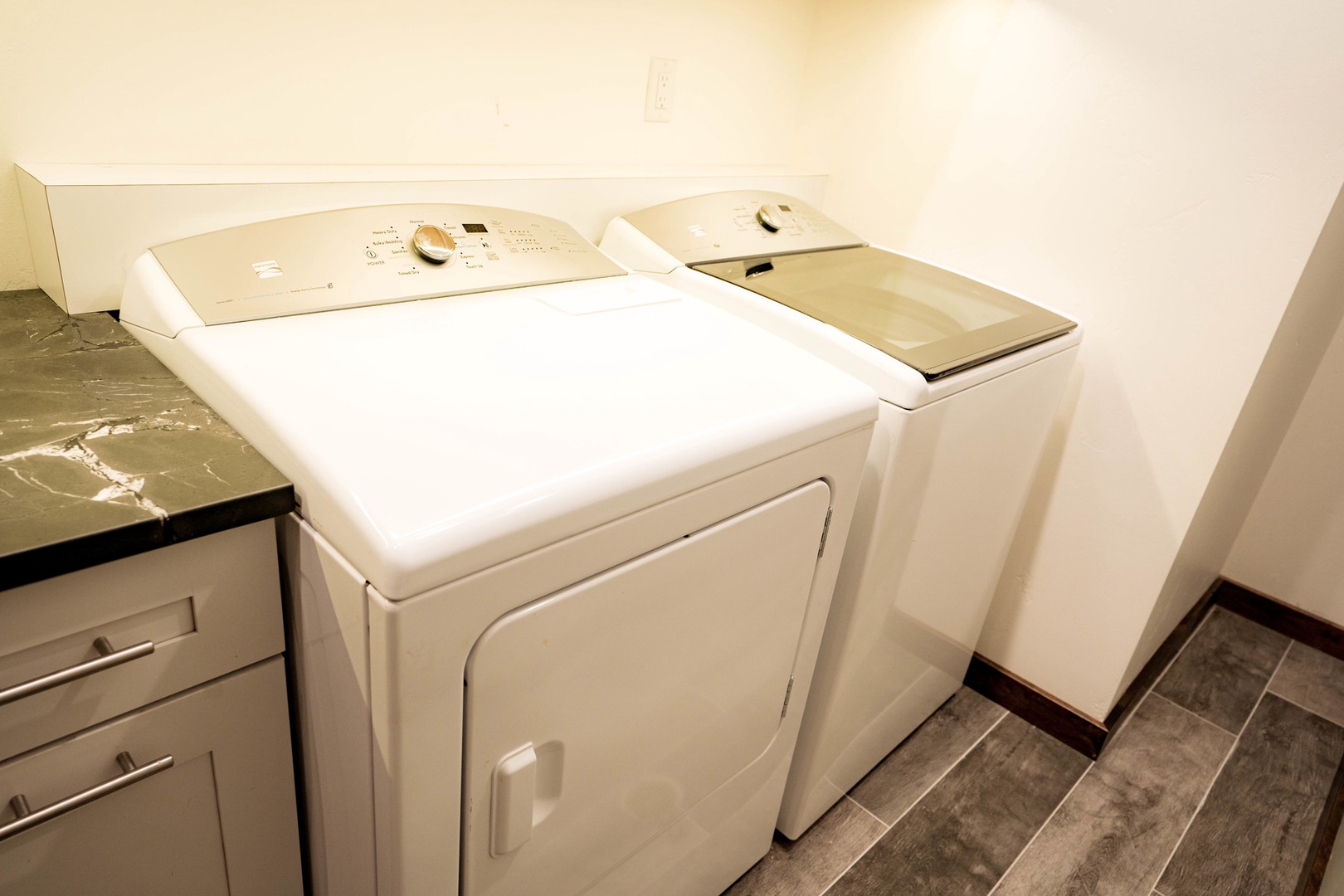 This 7-bedroom, 7-bathroom residence is a true marvel, offering a unique size and open design that ensures every guest enjoys ample space and comfort. Step onto the beautiful patio from any bedroom on the main floor or guest wing, where the Grand Tetons loom majestically in the distance. Unwind in the private hot tub, strategically placed in a secluded corner, offering an intimate connection with nature while ensuring your privacy. With three laundry rooms spread across the three levels, accommodating larger groups is effortless. Everyone can enjoy the convenience of fresh clothes and linens, making your stay hassle-free after a long ski day.