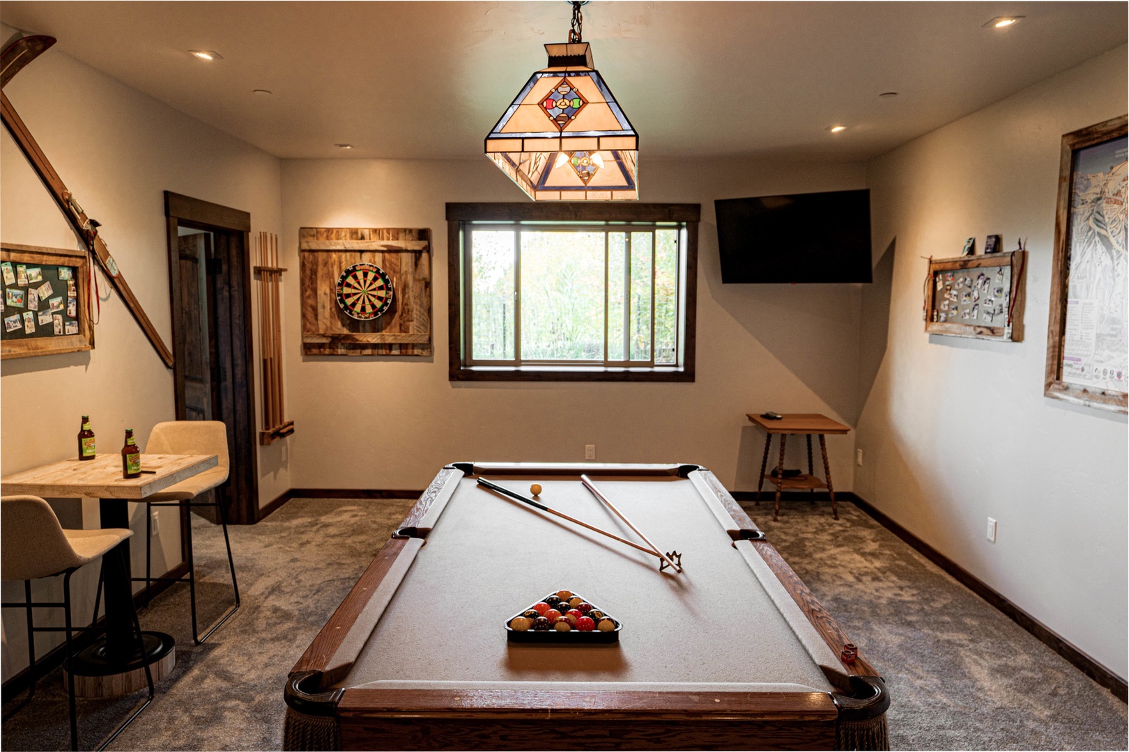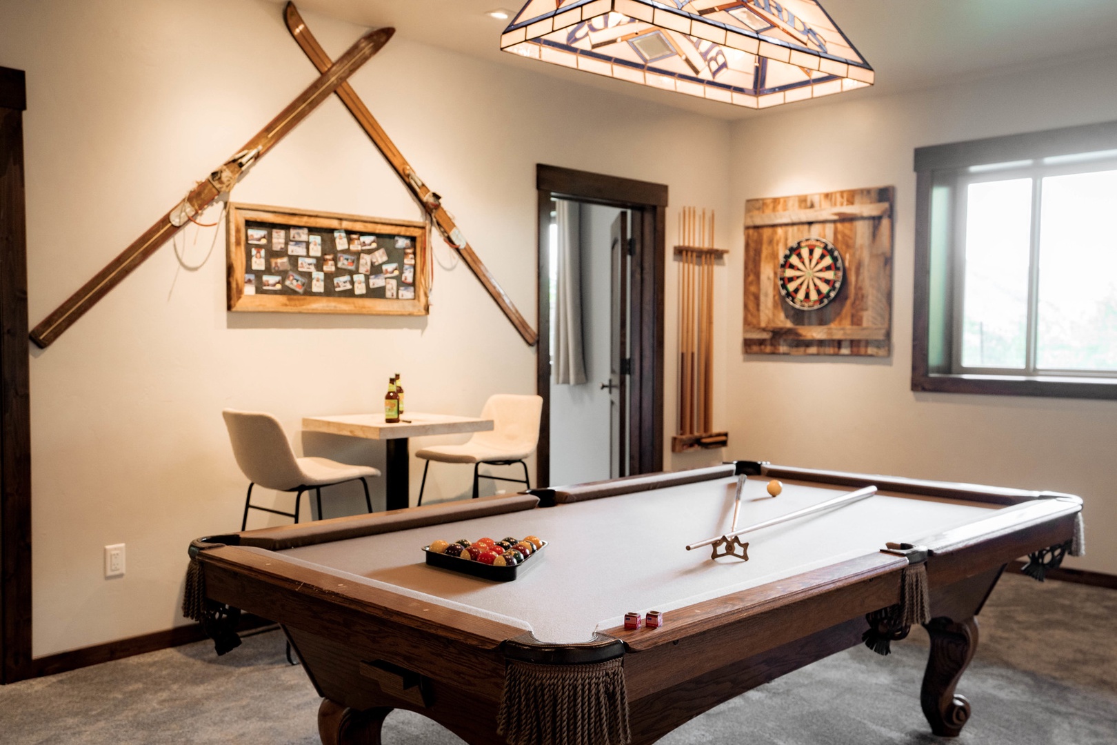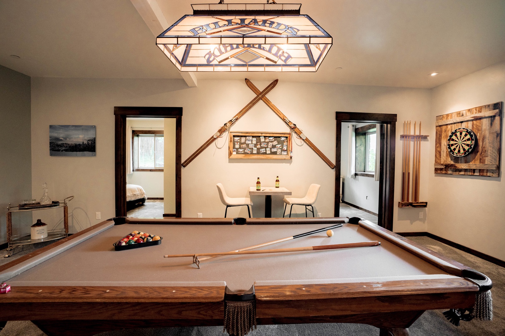 The lower level of "Tatanka" is a haven of entertainment, featuring a movie theater and a game room. Let the kids indulge in fun-filled activities like darts and with their choice between 3 queen sized private bedrooms.