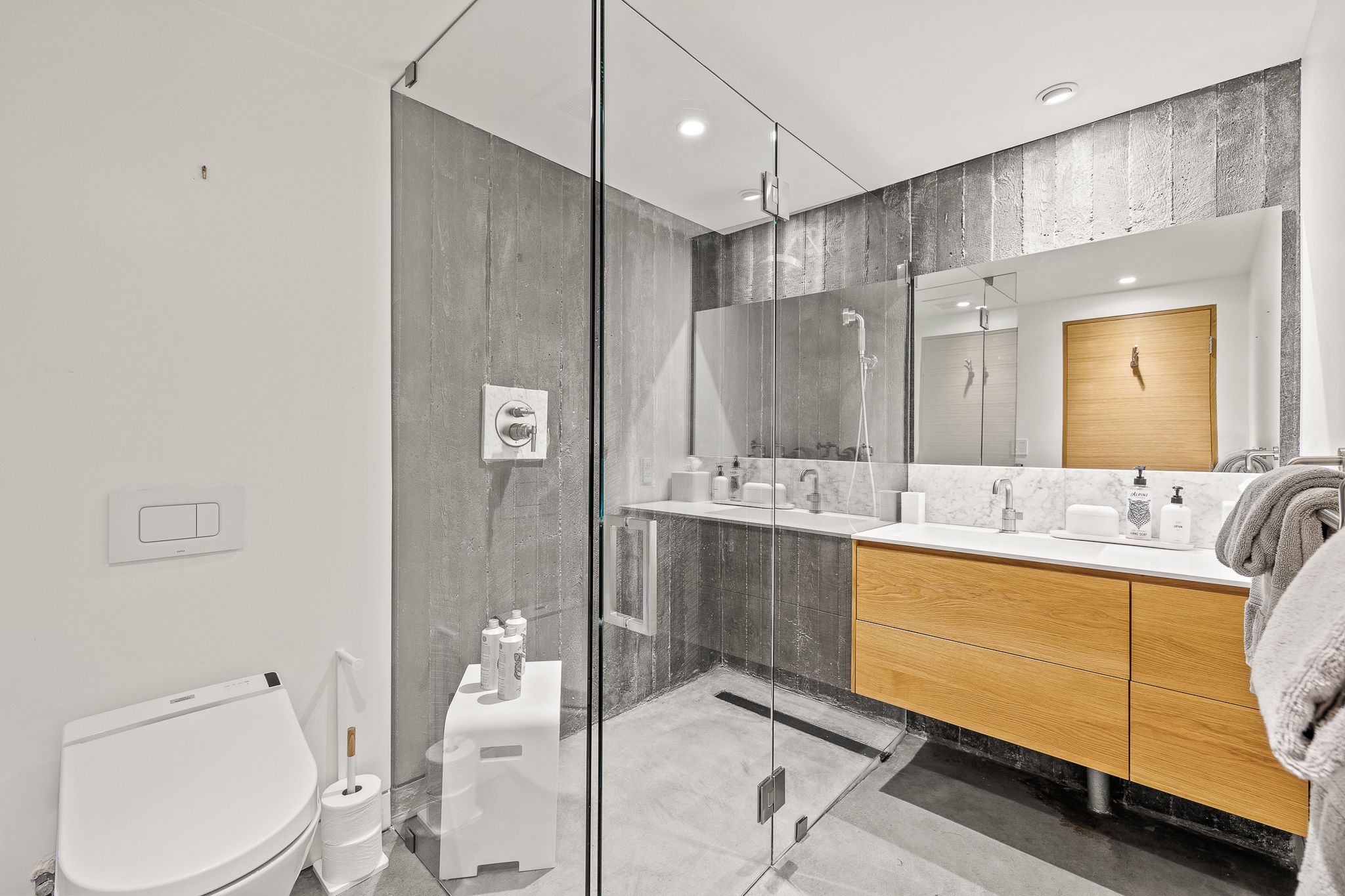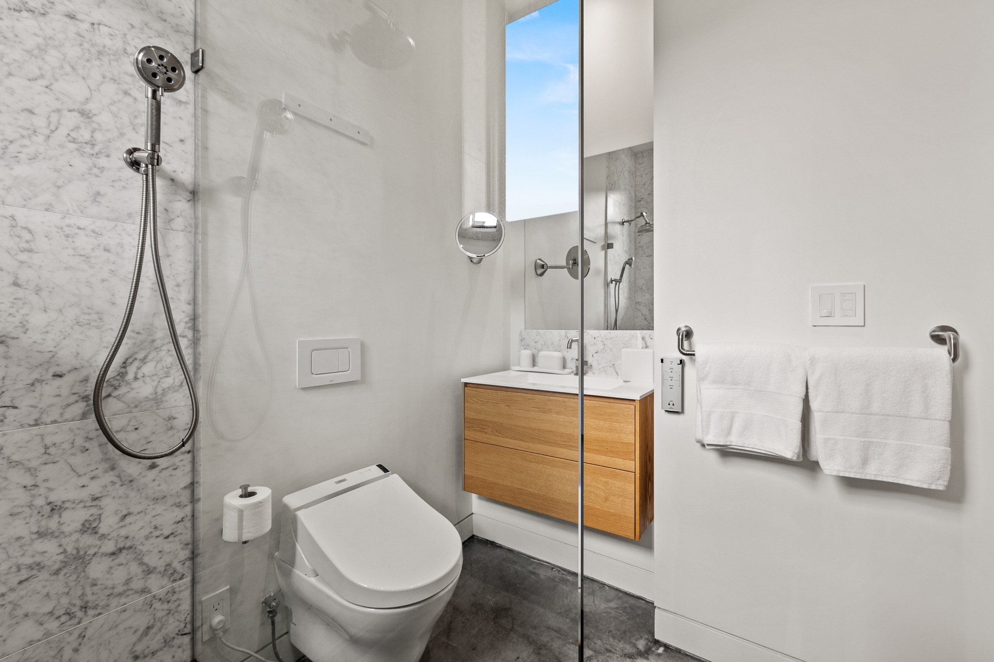 The two king bedrooms on the main floor boast walk-in closets and ensuite bathrooms, creating an atmosphere of refined comfort. Each bathroom is equipped with a remote-controlled heated bidet wash system, providing a touch of modern luxury.