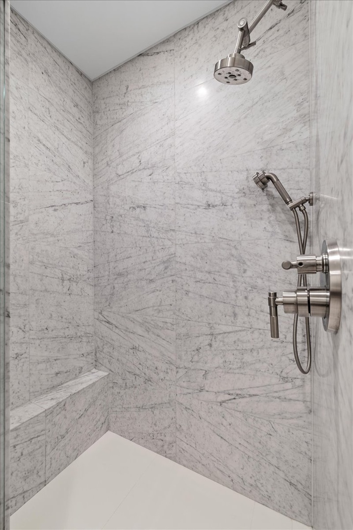 The upper floor of the property features the master suite, two guest rooms, a pool table common area with a large gas fireplace lounging area, a half kitchen, a powder room, and a laundry room with a steam cabinet for laundry. The master suite is a private oasis with a fireplace, a private balcony, a fenced yard, a walk-in closet, and an elegant bathroom complete with a private coffee/espresso bar. The guest rooms also offer en-suite baths, walk-in closets, and gas fireplaces.
