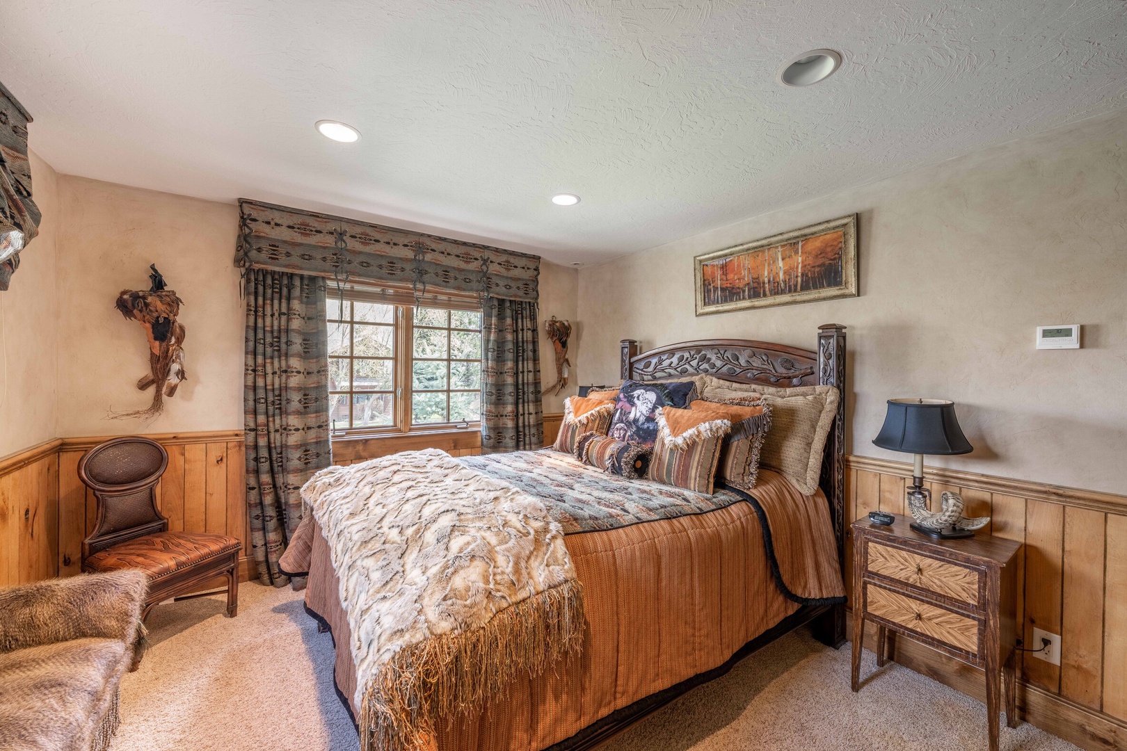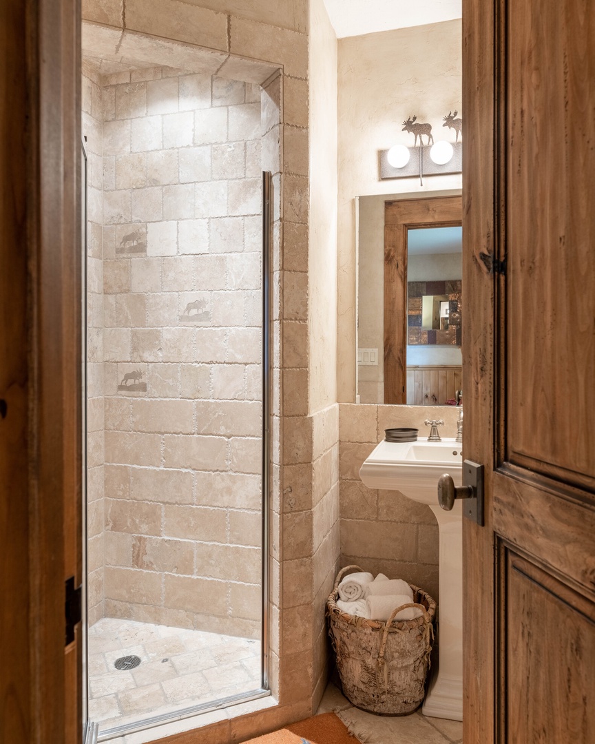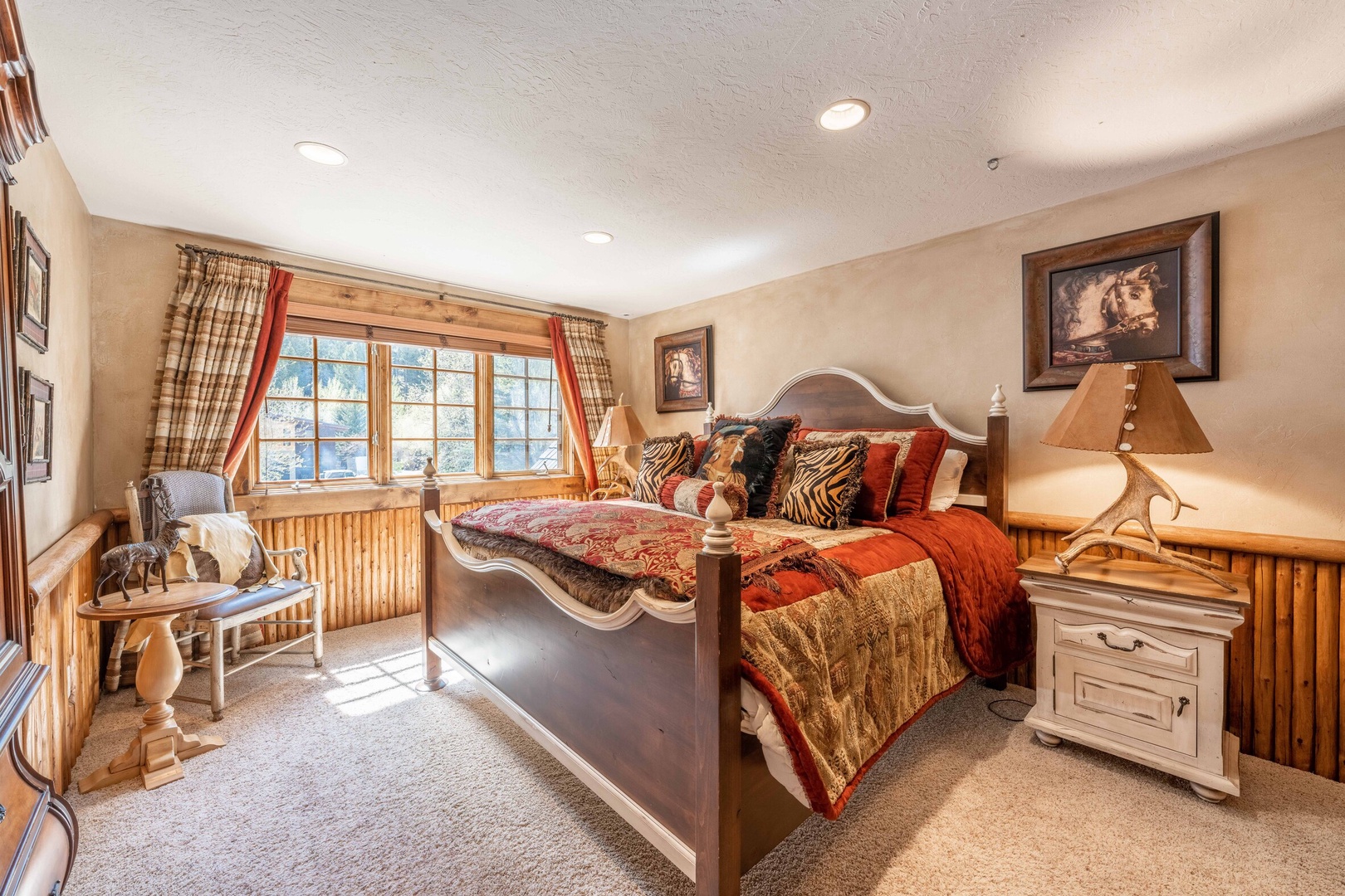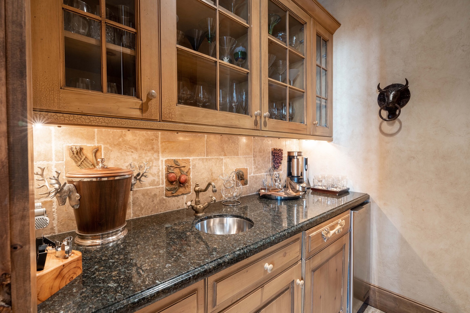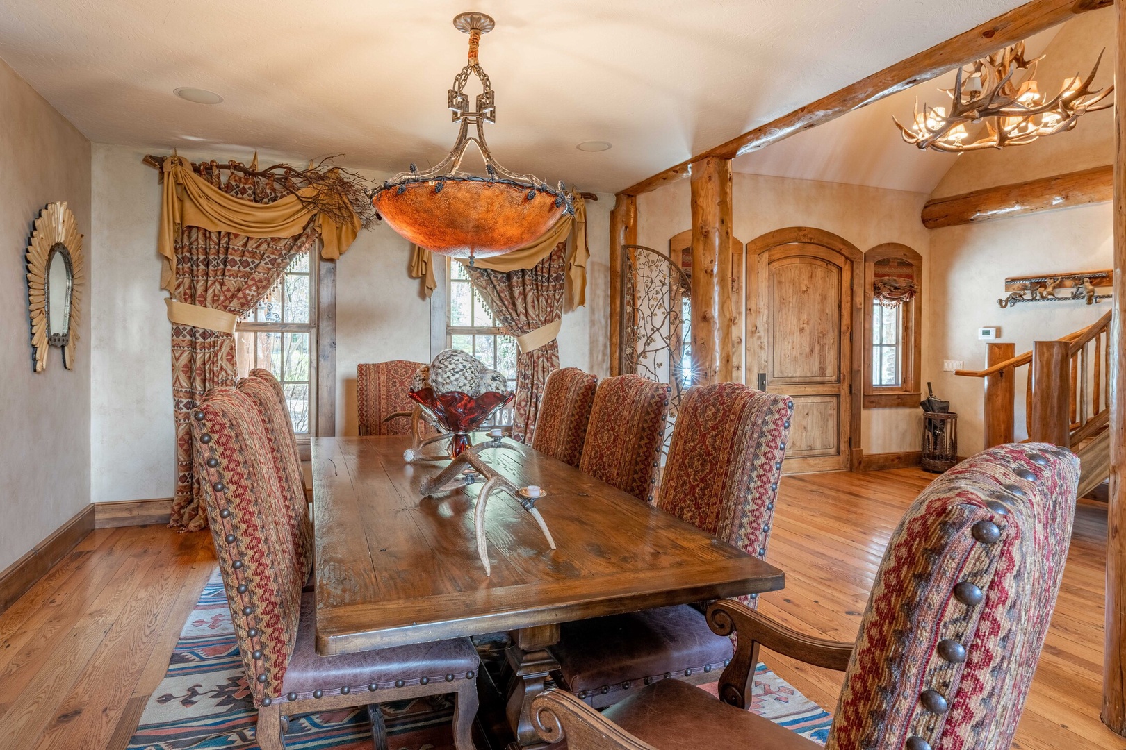On the first floor of Shoshone Lodge, guests will find a formal sitting room and living room, both equipped with wood-burning fireplaces. Guests will also find the spacious kitchen equipped with a high-end Viking gas stove and oven. With two dining areas, one located right off the kitchen that has seating for six and a more formal dining area located just right of the front door that has seating for eight.