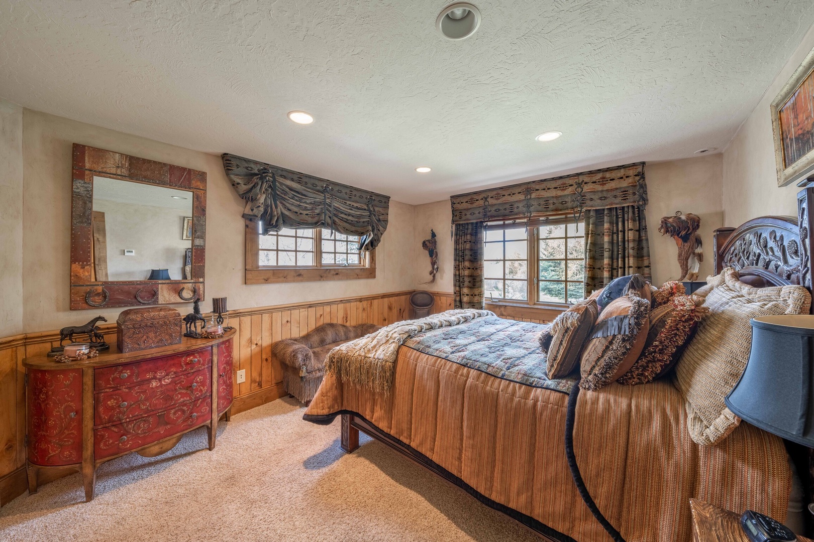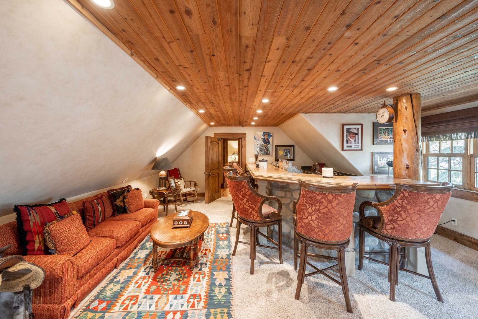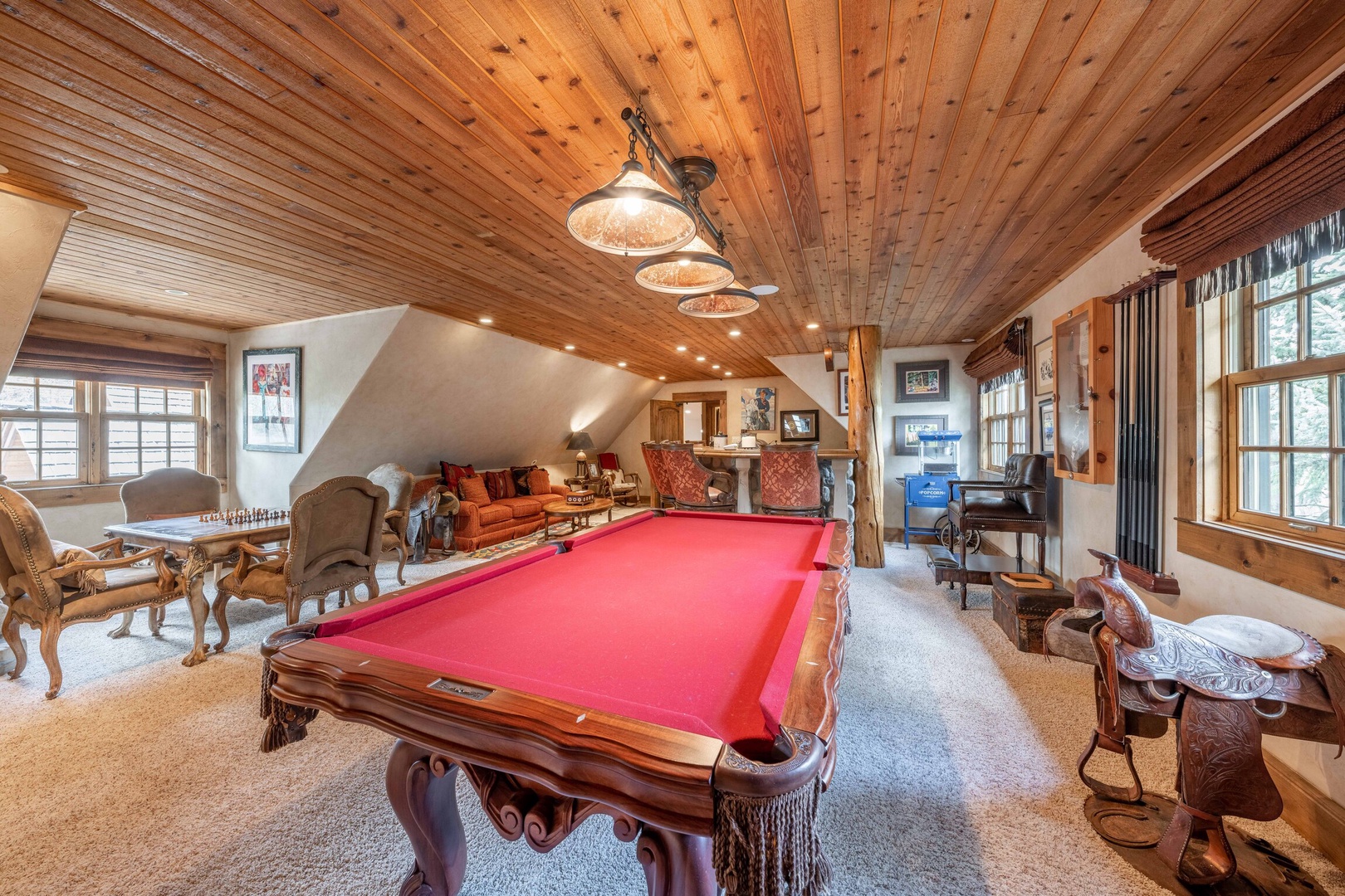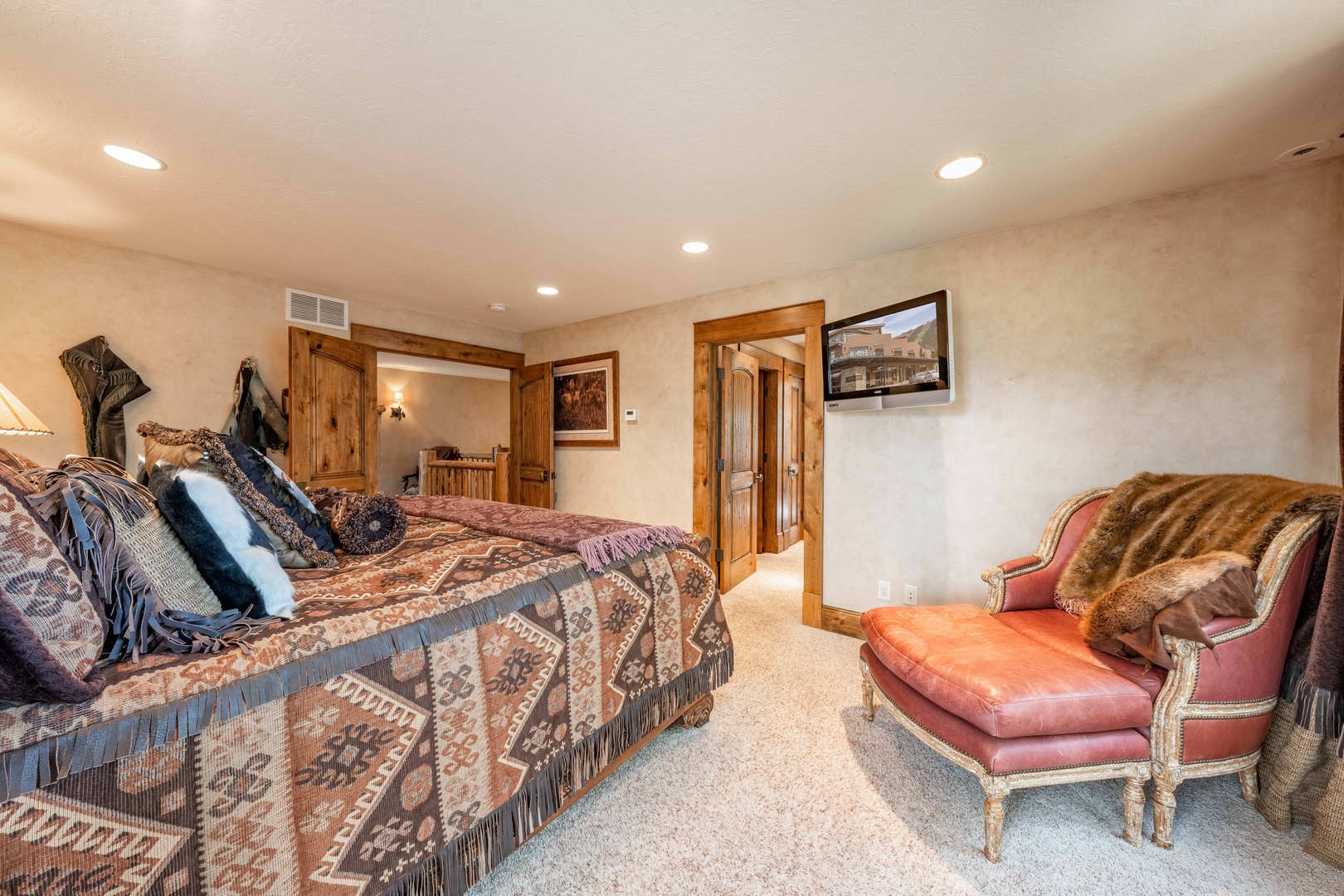 On the first floor of Shoshone Lodge, guests will find a formal sitting room and living room, both equipped with wood-burning fireplaces. Guests will also find the spacious kitchen equipped with a high-end Viking gas stove and oven. With two dining areas, one located right off the kitchen that has seating for six and a more formal dining area located just right of the front door that has seating for eight.