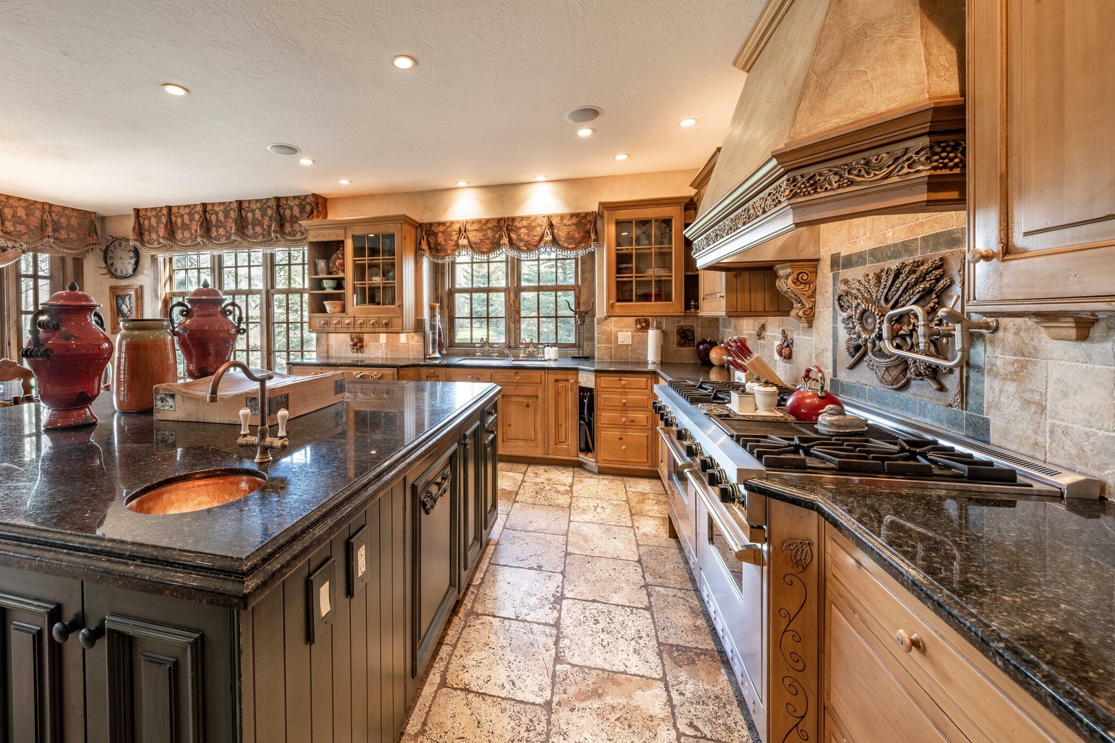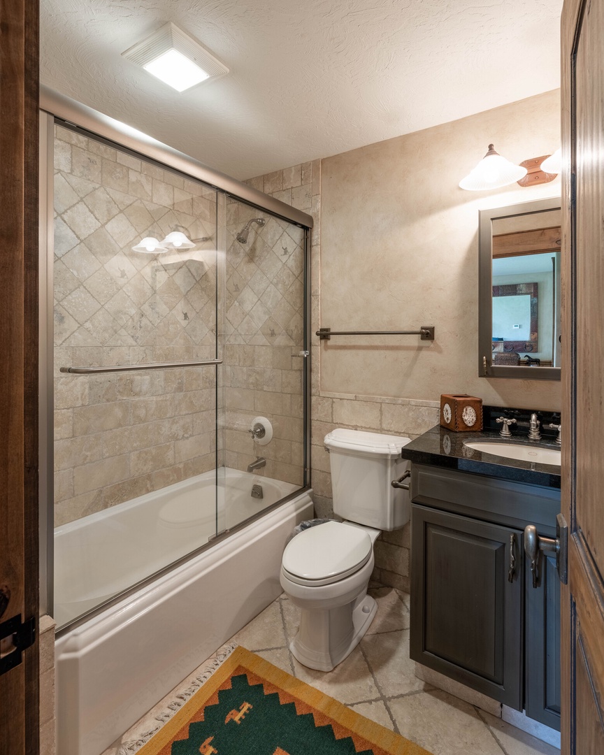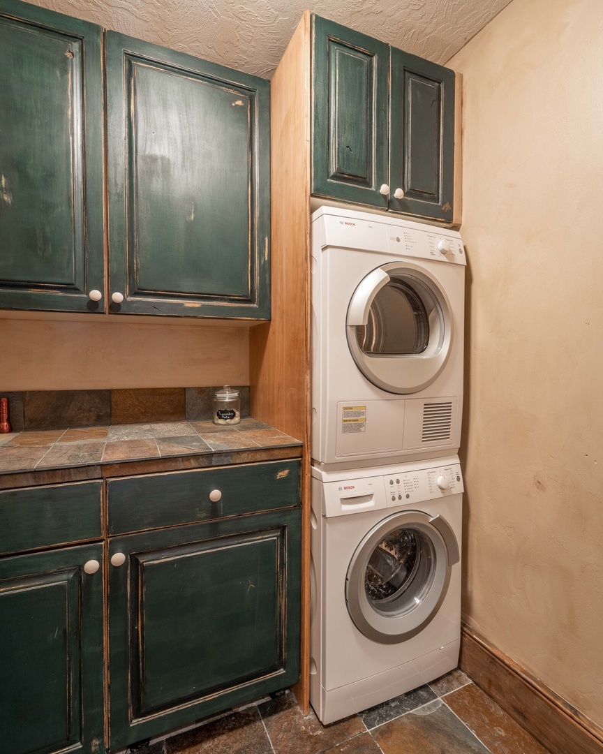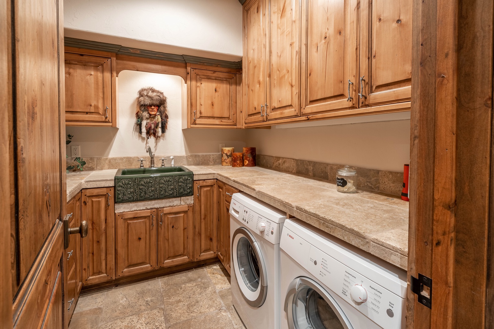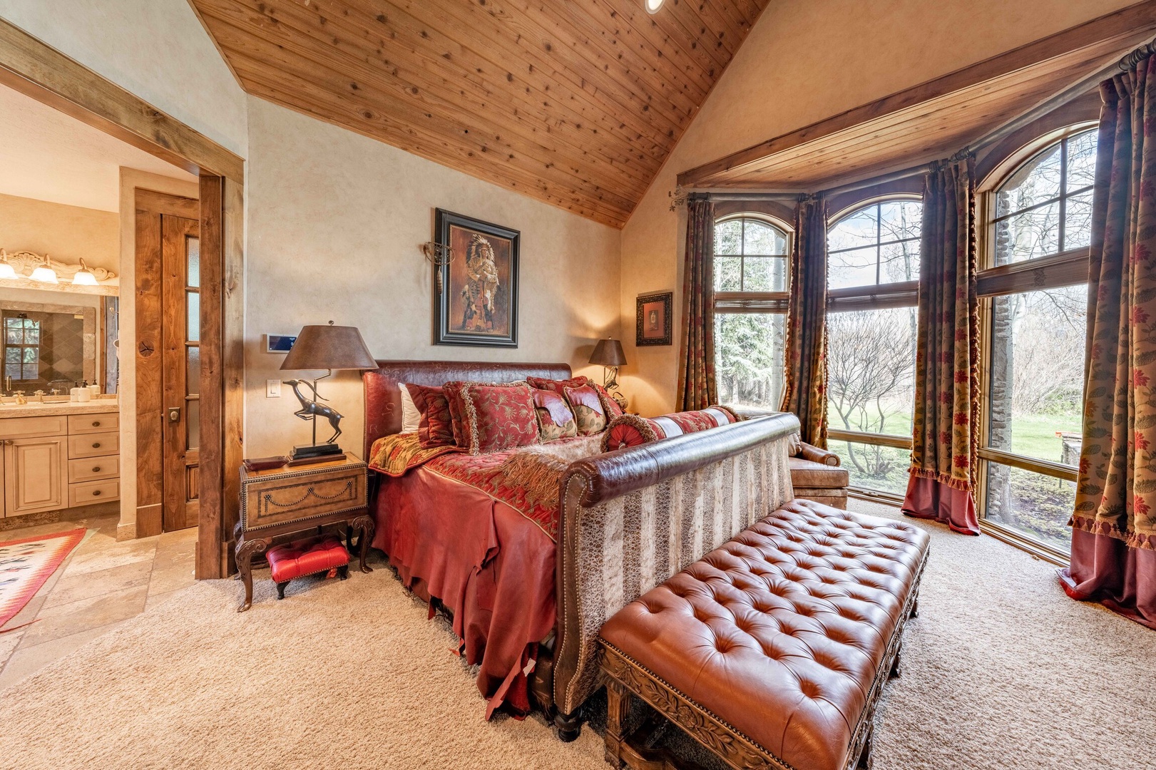 On the first floor of Shoshone Lodge, guests will find a formal sitting room and living room, both equipped with wood-burning fireplaces. Guests will also find the spacious kitchen equipped with a high-end Viking gas stove and oven. With two dining areas, one located right off the kitchen that has seating for six and a more formal dining area located just right of the front door that has seating for eight.